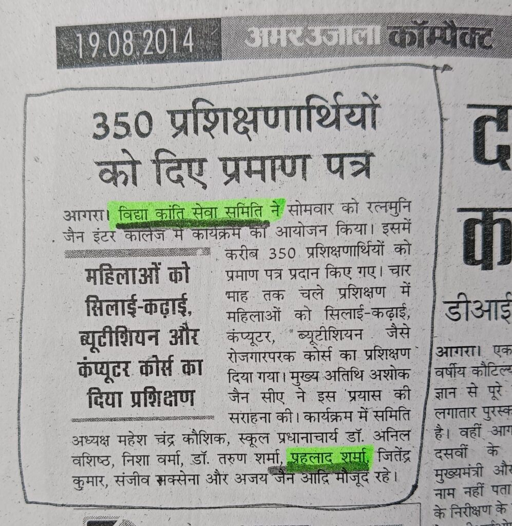 The work of Vidya Kanti Seva Samiti has been consistently featured in print media since 2009. Newspaper coverage highlights the organisation’s training programmes, community initiatives, cultural activities and social awareness campaigns.These publications serve as independent documentation of the organisation’s ground-level work and its positive impact on society.