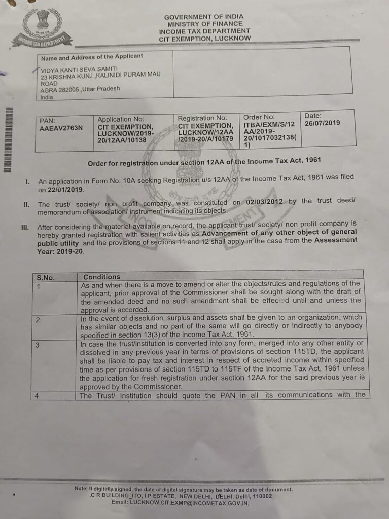 Registered under Section 12A of the Income Tax Act