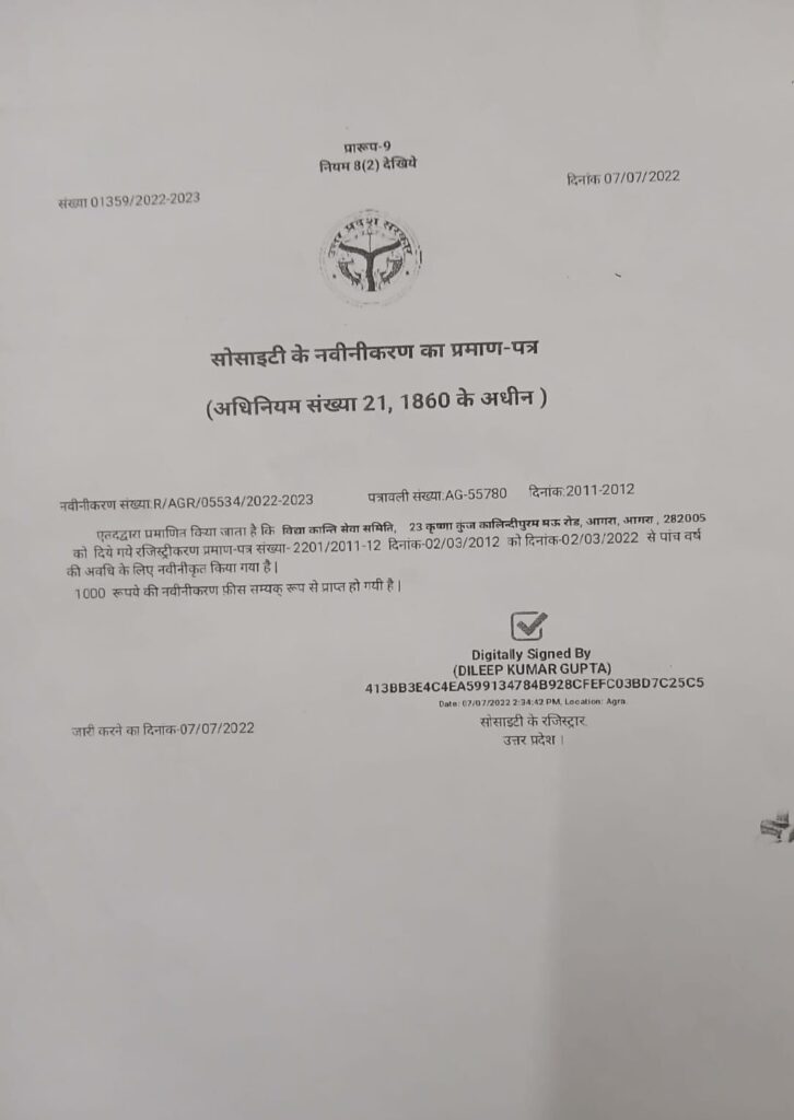 The organisation has received appreciation, certificates and recognition from various institutions, social organisations and dignitaries for its contribution to social welfare and community development.These recognitions reflect the organisation’s consistent efforts and credibility built over years of dedicated service.